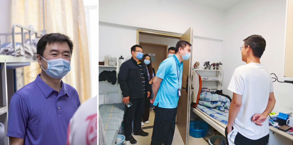 在线买世界杯平台院长刘明杰一行到实验7号楼研究生工位、沙河东区和西区宿舍看望本研学生,与同学们详细沟通了学习和科研进展,了解学生需求,鼓励同学们合理安排好科研、上课、学习及生活,积极锻炼身体,以实际行动守护美丽校园。