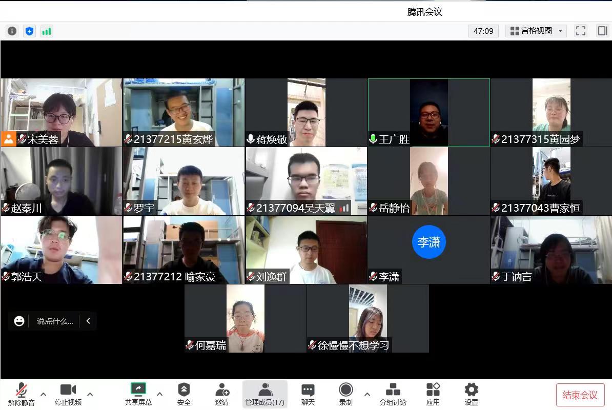 晚上20:00,212721班班主任王广胜老师召开了线上班会,与21小班的同学们云端见面。