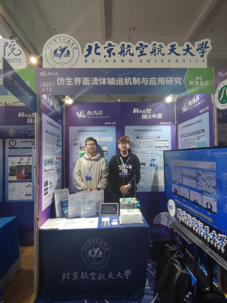 在第十八届“挑战杯”全国大学生课外学术科技作品竞赛中,北航在线买世界杯平台学生参赛作品《仿生界面流体输运机制与应用研究》斩获特等奖,《毛细行为对于石油在多层纳米限域空问运移的影响》斩获一等奖。