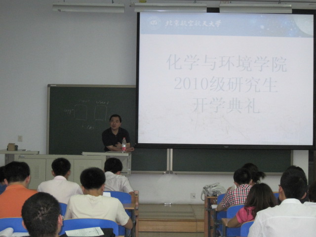 9月13日晚七点,世界杯官网院领导及全体研究生新生齐聚一堂,在新主楼B101教室,拉开了化学与环境学院2010级研究生新生开学典礼的序幕。