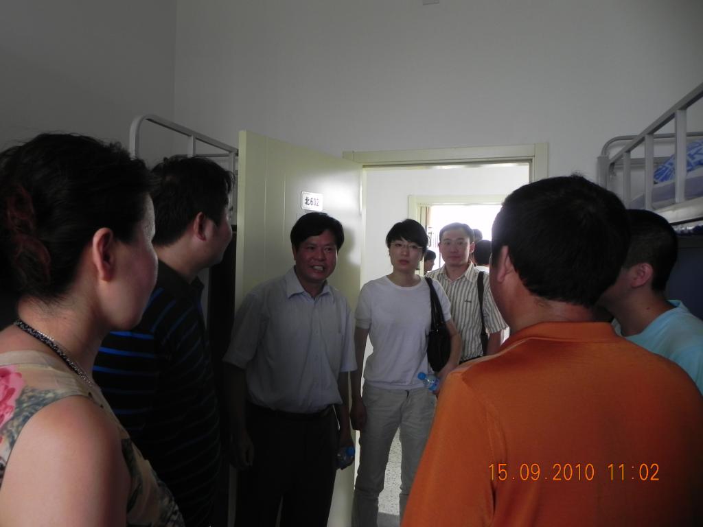 2010年9月15日,世界杯官网党委书记朱天乐教授、副院长相艳教授、党委副书记梁国栋老师,在分团委书记兼2010级辅导员韩炜老师的陪同下莅临沙河校区指导迎新工作,并深入学生宿舍慰问新生,与新生及新生家长进行座谈。