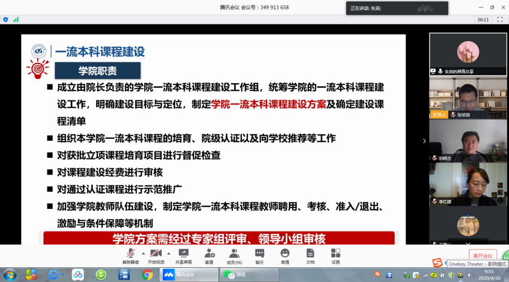 朱英介绍了学校一流本科课程建设方案,并就在线买世界杯平台的具体安排做了说明。学院第一时间成立了一流本科课程建设工作组、院级认证专家组,并就学院方案制定及院级课程立项时间做了统筹部署,动员各位老师积极参评,把握时机。同时,朱英就学校、学院学期课程考核安排预案做了汇报。
