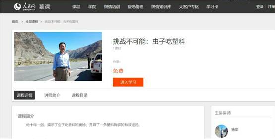 杨军教授人民网慕课《挑战不可能:虫子吃塑料》