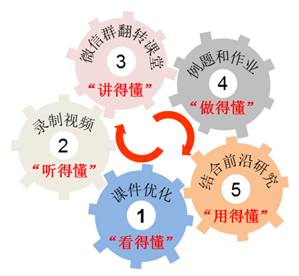 《物理化学A》是在线买世界杯平台化学和应用化学专业本科生的核心专业理论课,主要讲授化学过程的基本原理和基本规律,为实际的科研和生产过程提供理论指导。物理化学课程中的理论都是建立在大量抽象的概念、模型以及数学推导的基础之上,因此需要缜密地分析和反复地推敲才能理解这些概念的物理意义以及理论适用的体系和条件。另外,由于课程讲授的是最基本的理论,同学们在学习课程的过程中容易感觉课程内容过于经典,产生课程内容对化学前沿研究无用的错觉。针对课程的这些特点,为了确保线上教学具有良好的效果,课程负责人刘兆阅老师在线下授课的基础上,采取多维措施对线上教学进行设计,建立了适合《物理化学A1》线上教学的“5懂”授课模式(图1)。