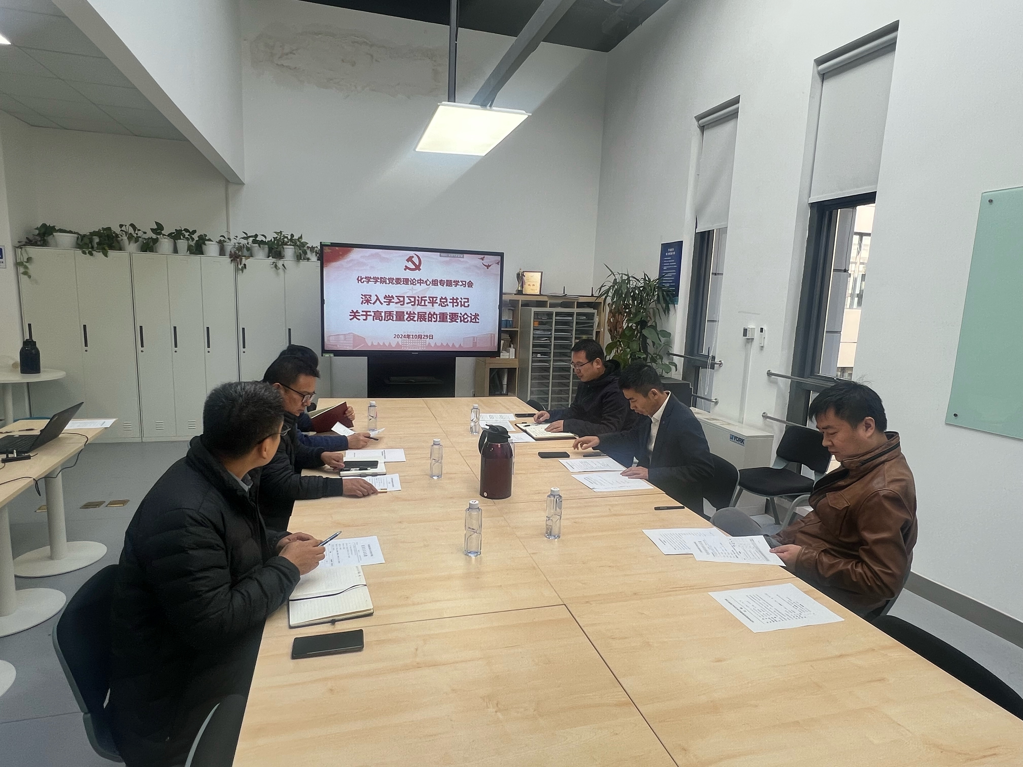 10月29日上午,在线买世界杯平台党委理论学习中心组召开学习会,围绕“深入学习习近平总书记关于高质量发展的重要论述,深刻认识加快实现是推动高质量发展的必由之路,心怀“国之大者”,强化有组织的科研,完善质量管理体系,全面提升服务国家战略和经济社会发展能力”展开学习。党委书记刘克松主持会议,学院党委理论学习中心组成员、教职工党支部书记参加会议。