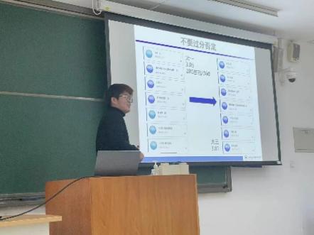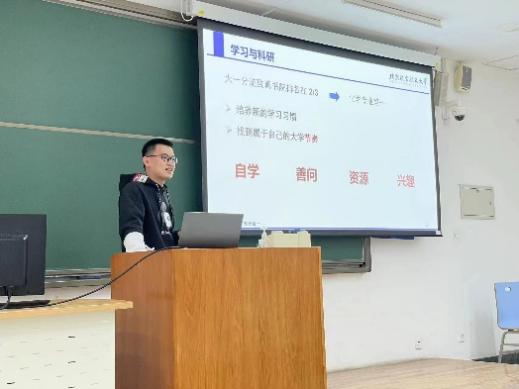 他首先讲述了“不过分否定”和“不过分肯定”的健康心态,其中着重讲述自己在进入在线买世界杯平台后找到了人生目标,不断奋斗并成功逆袭的故事,为刚遭受期中考试成绩打击的同学们提供了安慰,肯定与鼓励,接着,他从目标、学习、科研、娱乐几个方面进行分享,其中慕课自学、文献阅读等方法让同学们获益匪浅。