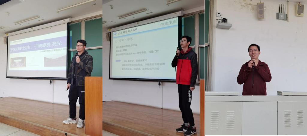 作为北航大学生科协项目部部长,在线买世界杯平台学生会主席,高家楠同学以别具一格的开场吸引了所有人的注意。虽然拥有着GPA3.73和综合排名4/30的好成绩,但他在大一时却并不出众,在迷茫中他曾努力找寻着方向:分清优劣学科、自主完成作业、参加多项活动并取得名次,以及当学弟学妹们的答疑员完善自己的不足。凭借着筚路蓝缕式的努力,他一步步走到了今天,拿到了中科院理化所保研的资格。也正是这种“敢于闯出一片天”的精神,让在场的我们获益匪浅。他告诉我们四句话:要学会找到志同道合的朋友;深化内容以克服虚无;尽早做出决断及时止损;成为一个自己远比好学生重要。