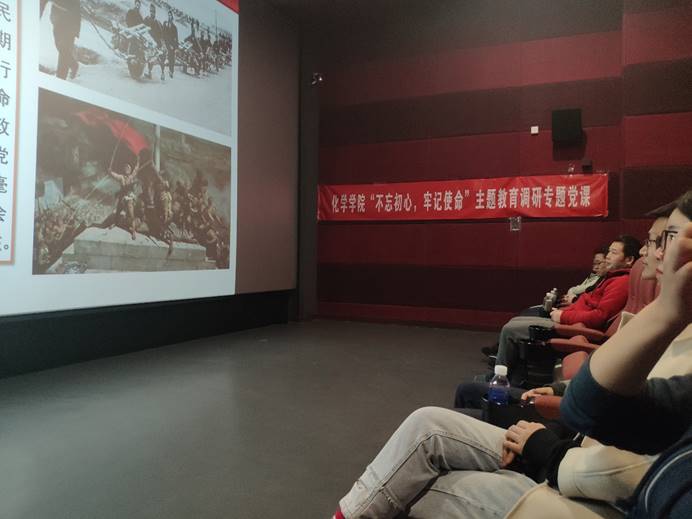 观影开始前,大家纷纷佩戴党员徽章,以学习的态度期待接下来的影片故事。观影过程中大家几度爆发热烈的掌声,纷纷为赵大爷的事迹所感动,甚至一度眼眶湿润。伴随着影片结束,大家又爆发出雷鸣般的掌声,赵大爷的事迹激励着大家,也鼓舞着大家。稍作休息之后,学院党委书记李红捷给大家讲授“不忘初心、牢记使命”主题教育调研专题党课,带大家重温入党誓词以及入党誓词的由来,并与大家分享了党的党章党规等制度,最后带领大家再一次宣读入党誓词。