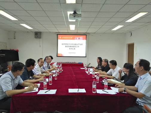 7月11日下午,由纪委书记何新洲,纪委副书记、纪委办公室主任、监察处处长武立勋,纪检员方滨艳,纪检员何述义,党风廉政监督员王健和谭立组成的检查组对世界杯官网全面从严治党暨党风廉政建设工作进行了检查。世界杯官网党委书记李红捷,常务副院长郭林,本科教学副院长朱英,化学系主任高秋明,党委委员杨青林及学院教工党支部书记、青年教师代表等参加了汇报会。